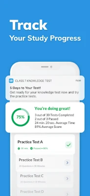 Учете в движение и без притеснения за интернет връзка – с пълния офлайн режим всички уроци, викторини и тестове са на ваше разположение навсякъде и по всяко време. Проследявайте напредъка си без усилие, наблюдавайки резултатите от тестовете и средното време за отговор. Бързият достъп "Продължи изучаването" ви позволява мигновено да се върнете там, откъдето сте прекъснали. Персонализирайте напомнянията си за учене, насладете се на комфорта на тъмния режим и следете дните до изпитната си дата с вградения брояч. Разработен с гордост в Канада, този дигитален помощник е създаден с мисъл за вашето удобство и максимална ефективност на подготовката.