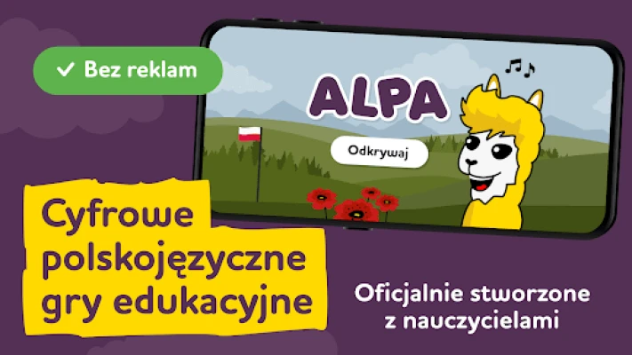 ALPA Kids предлага мобилни игри, които позволяват на деца на 3-8 години да учат числа, азбука, форми и полска природа. Създадени от педагози, игрите са на полски език с примери от местната култура за деца в Полша и чужбина.