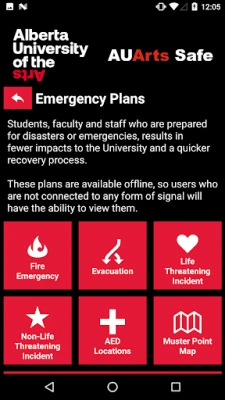 AUArts Safe предлага набор от жизненоважни функции, проектирани да реагират на разнообразни нужди. При спешност или за неспешни опасения, функцията "Контакти за спешни случаи" осигурява моментална връзка с правилните служби в района на AUArts. За да докладвате анонимно или директно за потенциален риск, "Подаване на сигнал" предлага лесен начин за уведомяване на охраната на AUArts. Освен това, приложението ви държи информирани с "Известия за безопасност", които предоставят актуални инструкции и предупреждения от службите за безопасност на кампуса по време на извънредни ситуации. За лесно ориентиране, "Карти на кампуса" ще ви насочат из територията на AUArts.