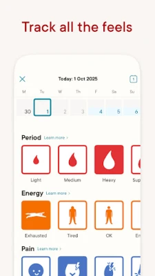 Clue е вашият надежден спътник за проследяване на менструацията, предлагайки прецизни прогнози за началото на цикъла, фазата на овулация, предменструалния синдром (ПМС) и др. Интелигентните алгоритми ви помагат да планирате бъдещето си по-уверено, независимо дали целта е да разбирате по-добре тялото си или да увеличите шансовете си за забременяване. С богат набор от инструменти за календар на цикъла и калкулатор за овулация, Clue премахва догадките. Можете да наблюдавате над 200 фактора като настроение, енергийни нива, сън и психическо състояние, за да разберете как те корелират с вашия менструален цикъл. Това е особено полезно за хора с нередовен цикъл, поликистозни яйчници (СПКЯ) или ендометриоза, тъй като помага за идентифициране на модели и управление на симптомите.