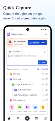RemNote трансформира начина, по който работите с информация. Създавайте подробни бележки, документи и структурирани планове, които лесно се свързват помежду си, формирайки ваша собствена интерактивна база от знания. С интелигентните флашкарти, генерирани директно от вашите записки, и вградената система за повторение на интервали, вие ще запомняте трайно с минимални усилия. Анотирайте PDF файлове, интегрирайте мултимедия и използвайте свързани препратки, за да преглеждате контекстуално всяка информация, свързана с конкретна тема. Дори задачите и списъците ви за изпълнение могат да бъдат създавани и управлявани в движение, без да превключвате между приложения.